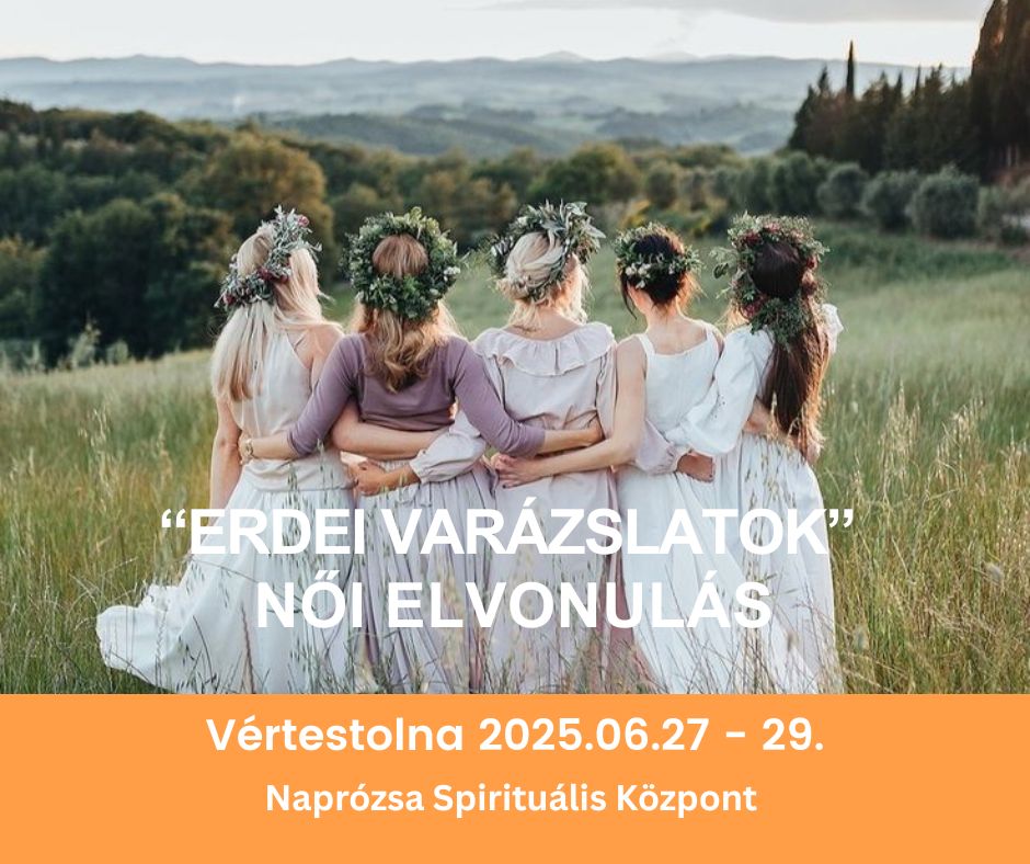 „Naprózsa Erdei varázslatok” szakrális női elvonulás 06.27- 29. VértestolnánJelentkezés: nemesgitta@gmail.com Szeretettel várunk egy gyönyörű helyen, egy csodaszép kapcsolódásra szakrális női körben a természettel, Földanyával, az elemekkel, női teremtő varázserőnkkel. Három varázslatos nap együtt örömben, szeretetben, gyógyító-szívtérben, hogy közelebb kerülj a benned rejlő, eredendő tudáshoz, és hogy pihenj, töltekezz. Jó kedv és sok nevetés garantált! Tábornyitás 06.27-én 14.00 […]